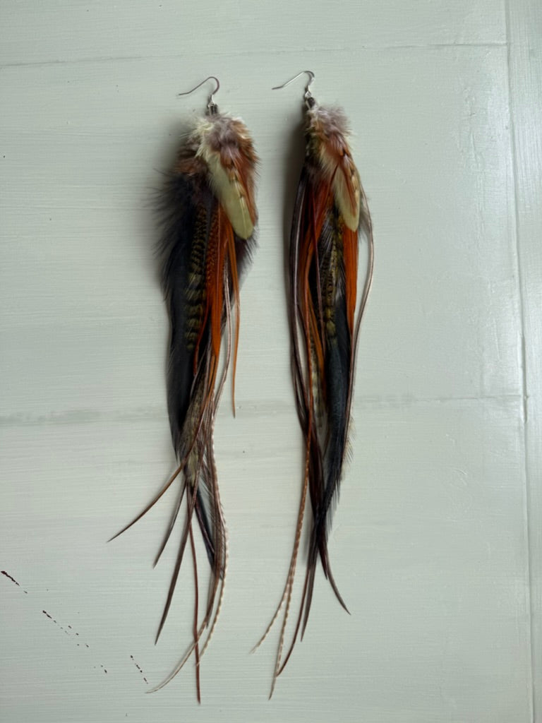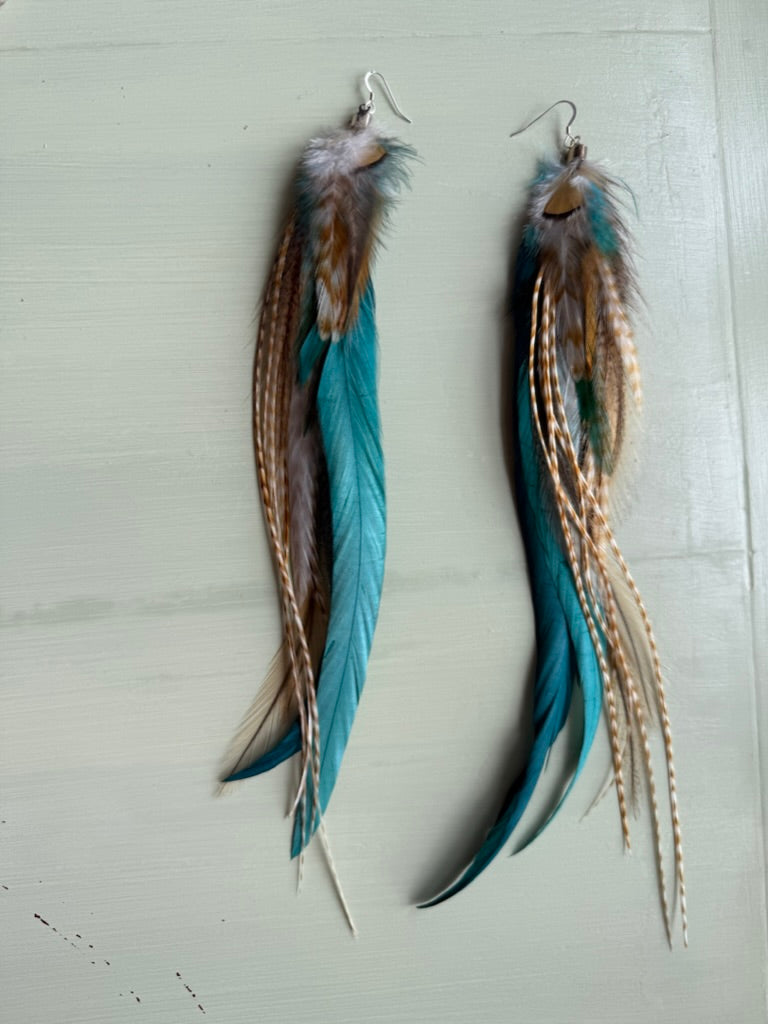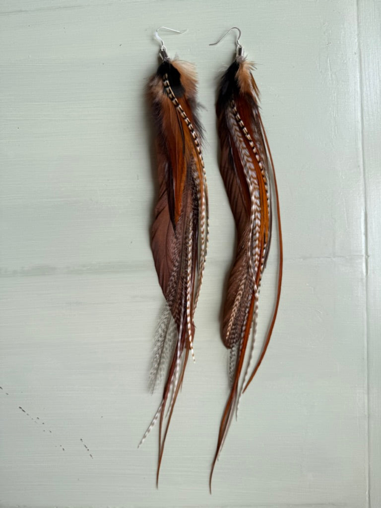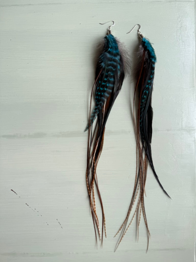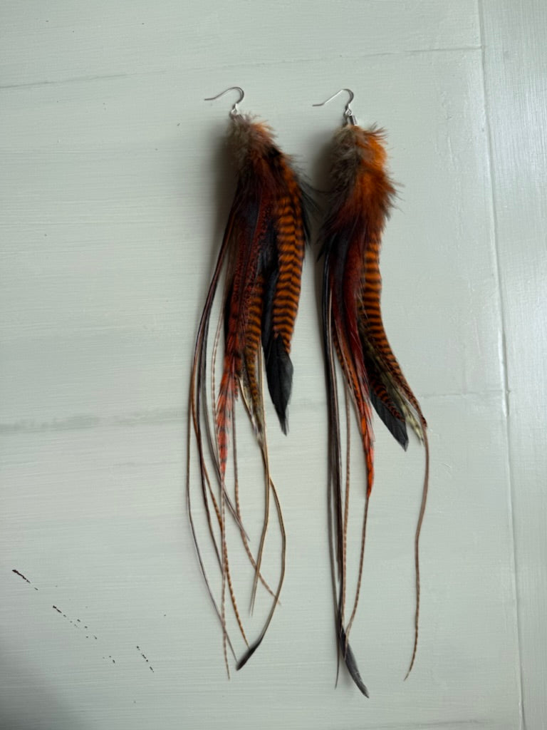 Långa fjäderörhängen mäter 30 -35 cm i längd.