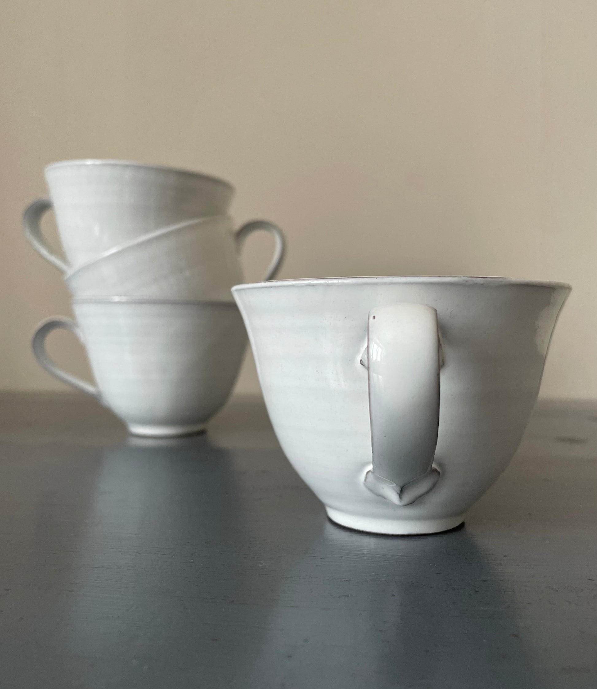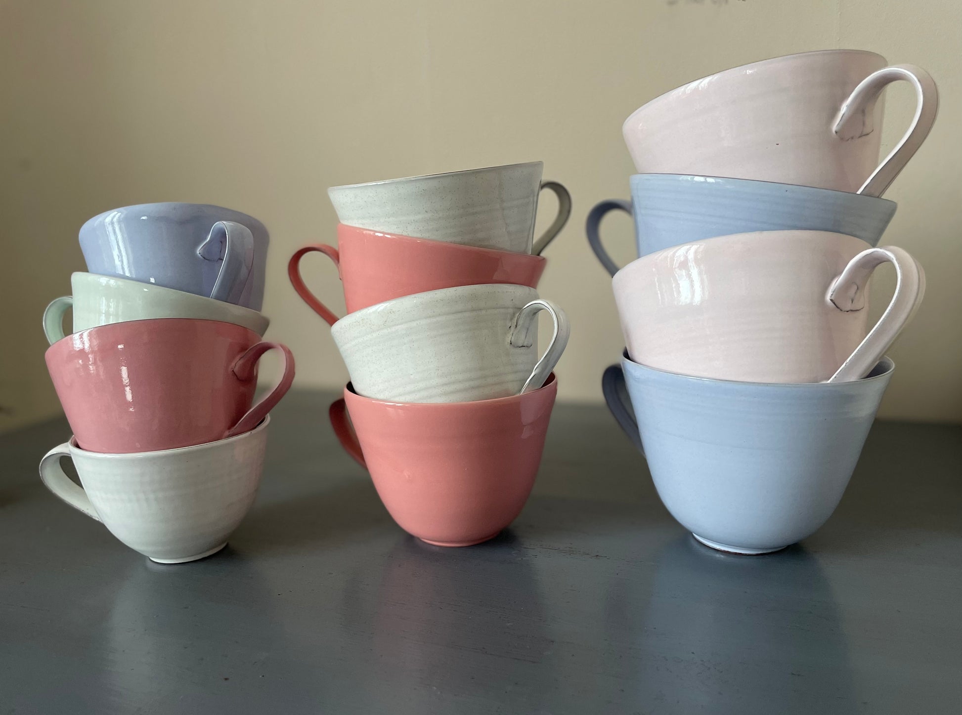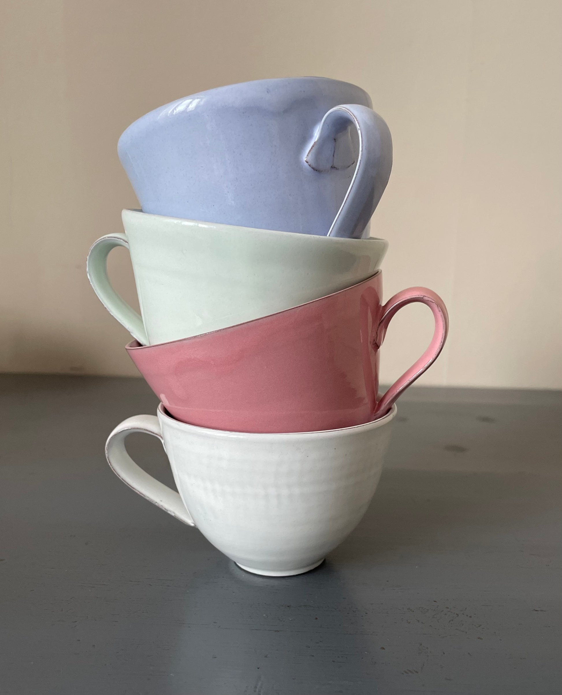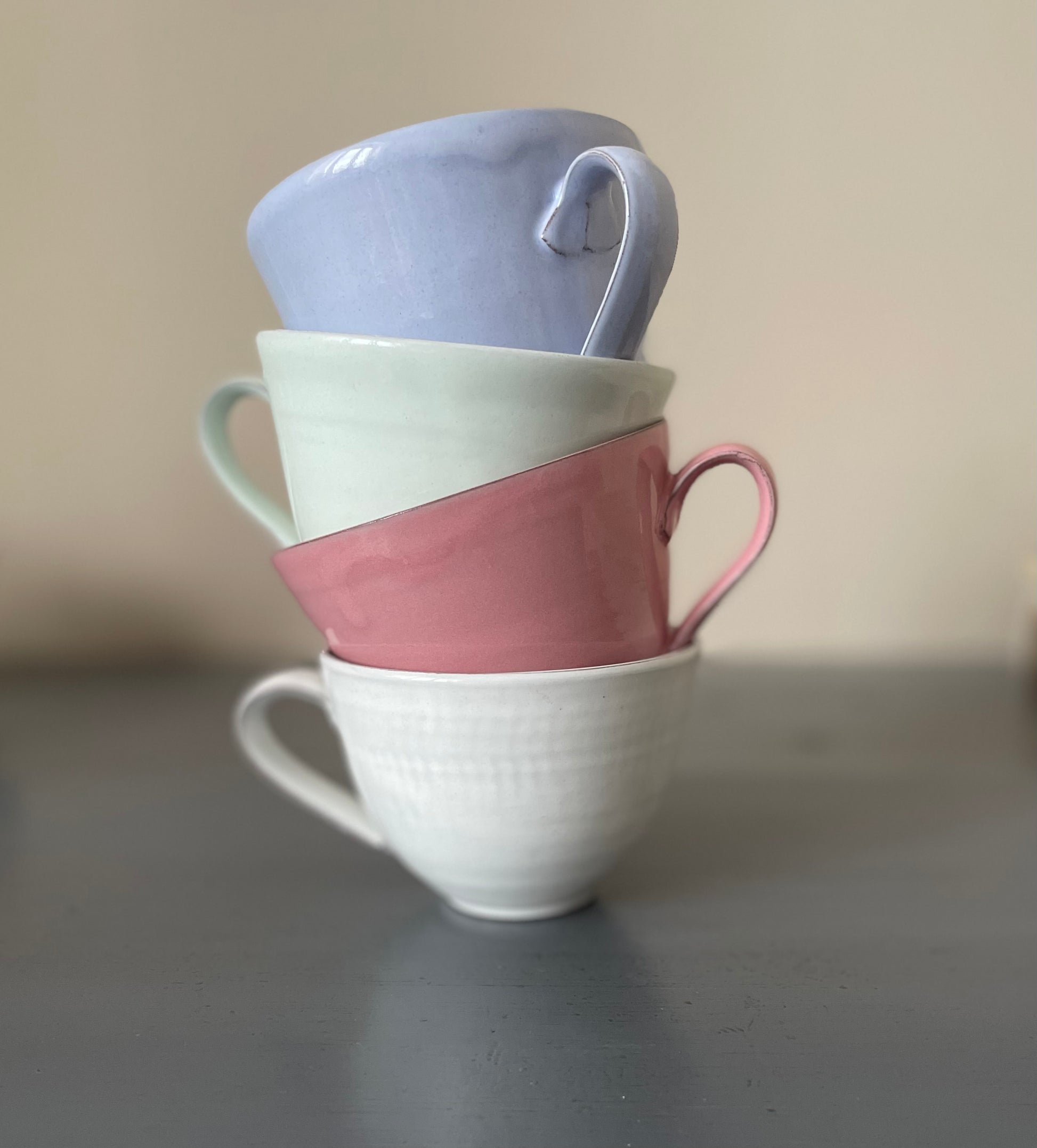 De sitter rätt i handen och väger nästan ingenting. Lergodset är glaserat, högbränt och kopparna tål både maskindisk och mikrovågsugn.